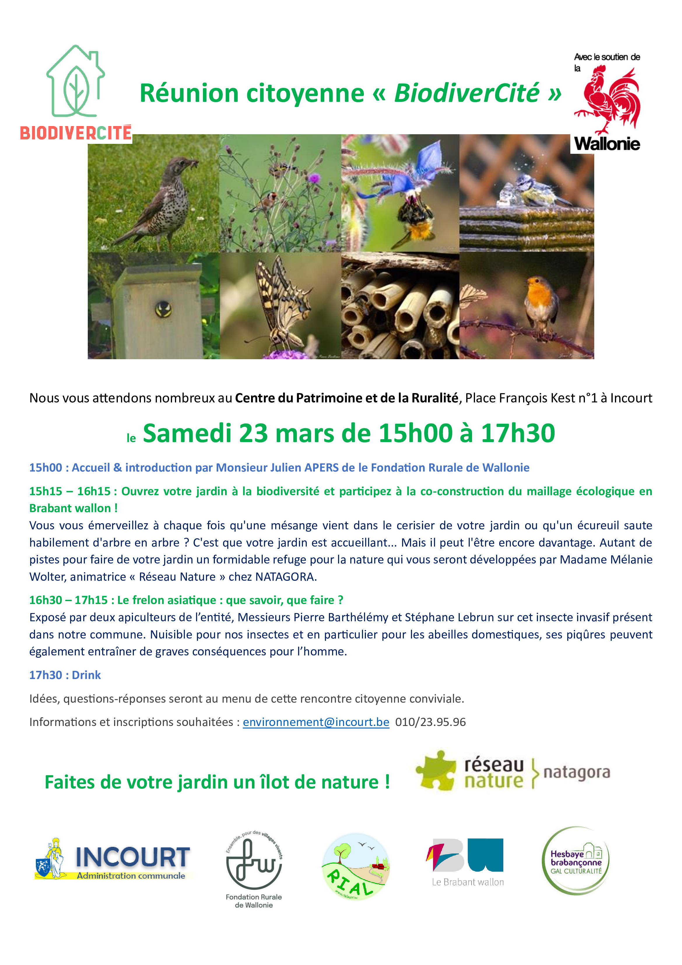 infos et inscriptions souhaitées: environnement@incourt.be – 010/23.95.96